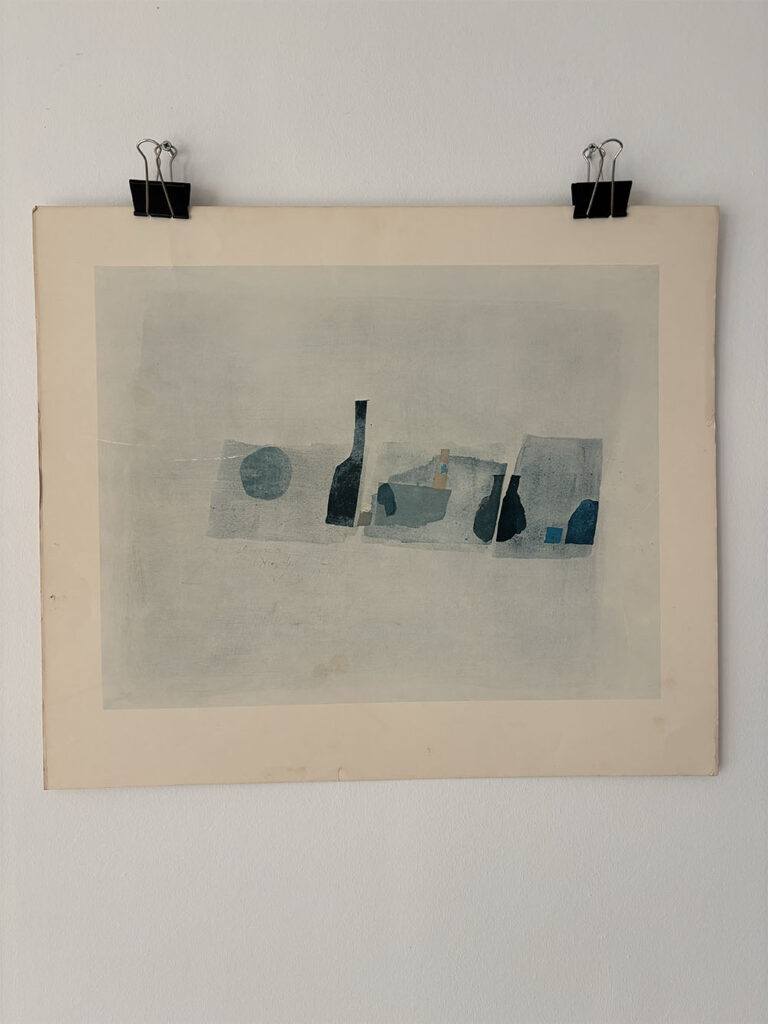 Museum Print Abstract Pale Blue Shapes, Julius Bissier 1962